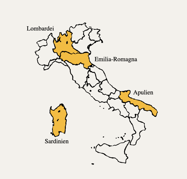 Il existe une différence de goût selon les régions : Alors que les spécialités du nord sont fabriquées à partir de lait de vache et sont souvent plutôt à râper, le fromage de brebis et le fromage à pâte filée dominent dans le sud de l’Italie.